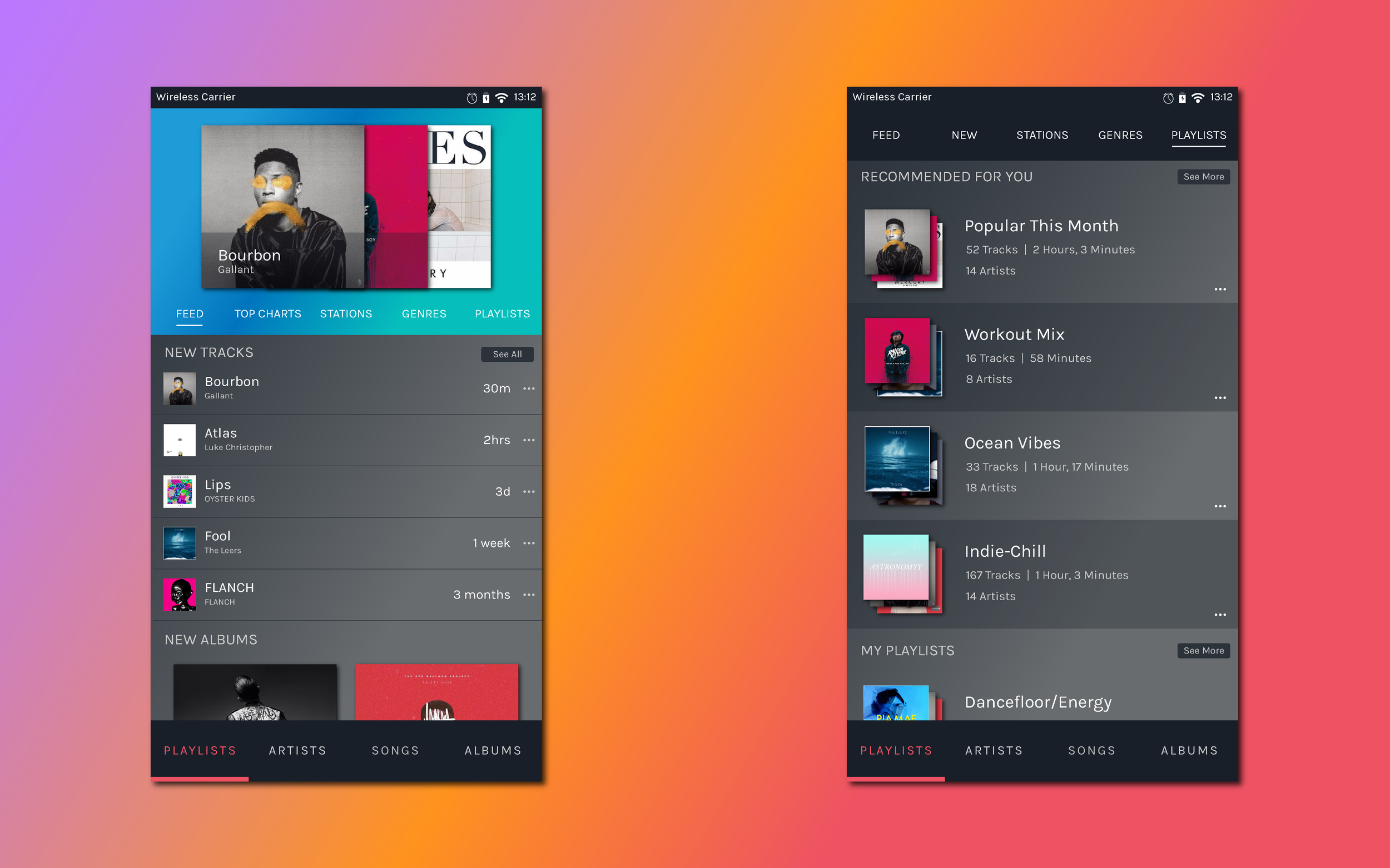 With so many unique and powerful media players in the current marketplace (Spotify, Apple Music, Google Play Music, etc.), the Media Player represented both a great opportunity to identify UX challenges and shortcomings in the current offerings, yet also meant finding a unique "aesthetic" and standing out from the rest was incredibly difficult. Considering the extensive amount of content that creating a media player constitutes, the longest and most demanding portion of designing this app was really in defining the underlying information architecture that was the user paths and interaction links.